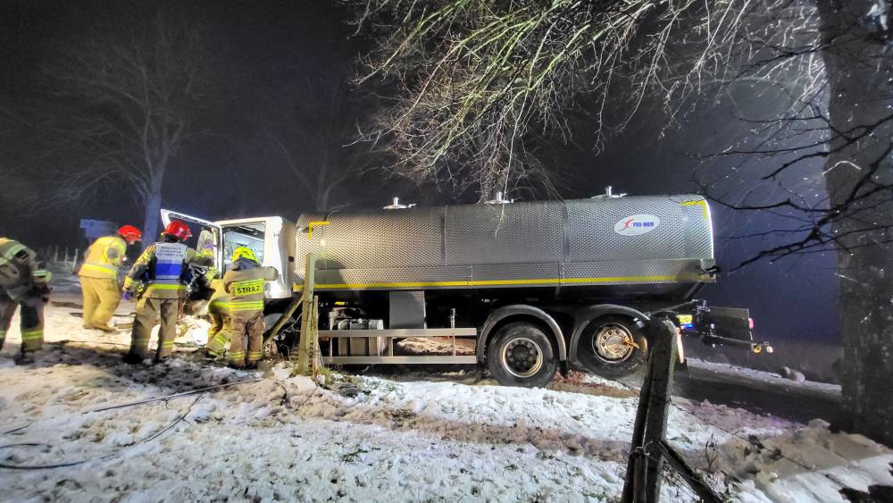 To jedno z wielu nocnych zdarzeń drogowych, do których dochodzi o tej porze roku w regionie. Policja oraz strażacy apelują o szczególną ostrożność na lokalnych drogach, zwłaszcza przy ograniczonej widoczności i śliskiej nawierzchni.